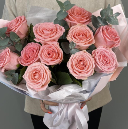 Буукет 11 розовых роз с эвкалиптом | Купить с доставкой в Жуковском