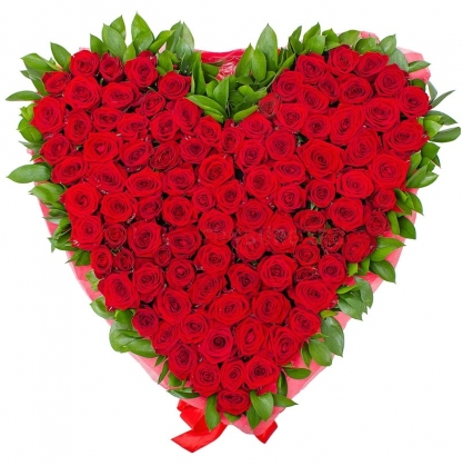 Композиция из 101 розы в виде сердца с доставкой в Жуковском