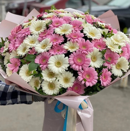 Букет из 101 белой и розовой герберой | Купить в Жуковском
