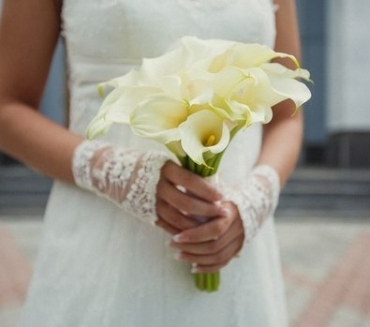 Белоснежные каллы и тюльпаны под ленту