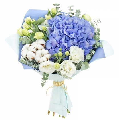 Букет из гортензий с добавлением хлопка | Доставка цветов в Жуковском